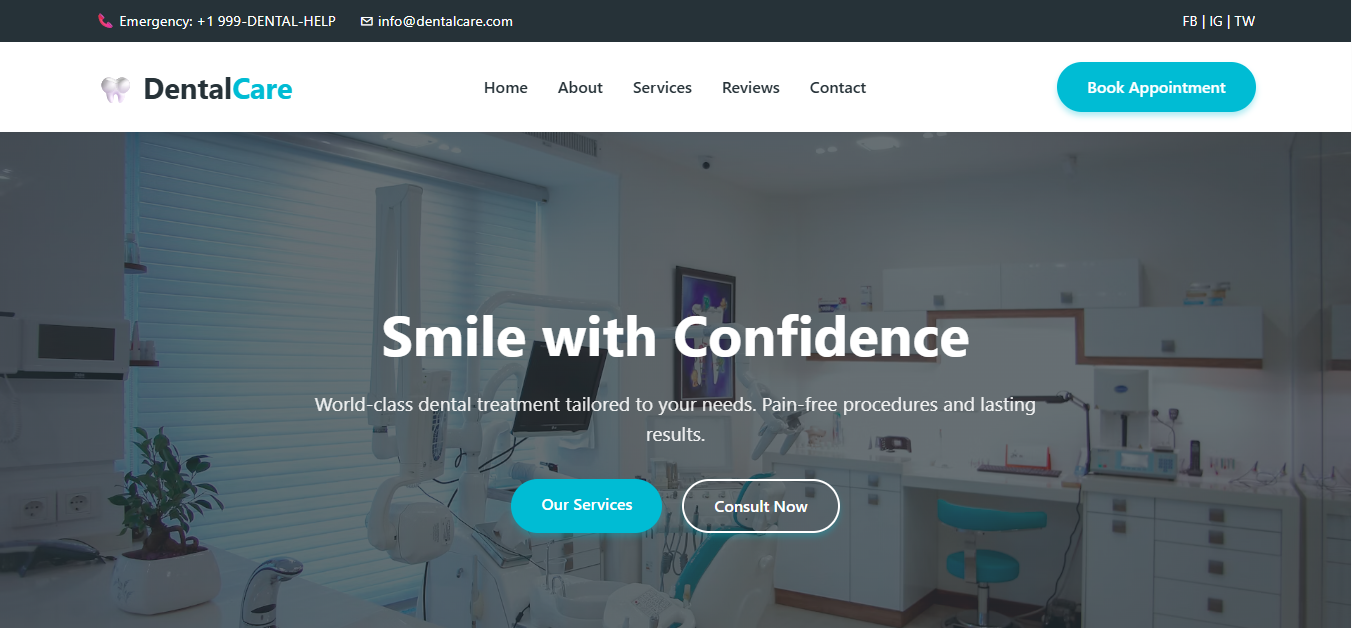 Professional doctor profile with appointment booking and patient reviews.