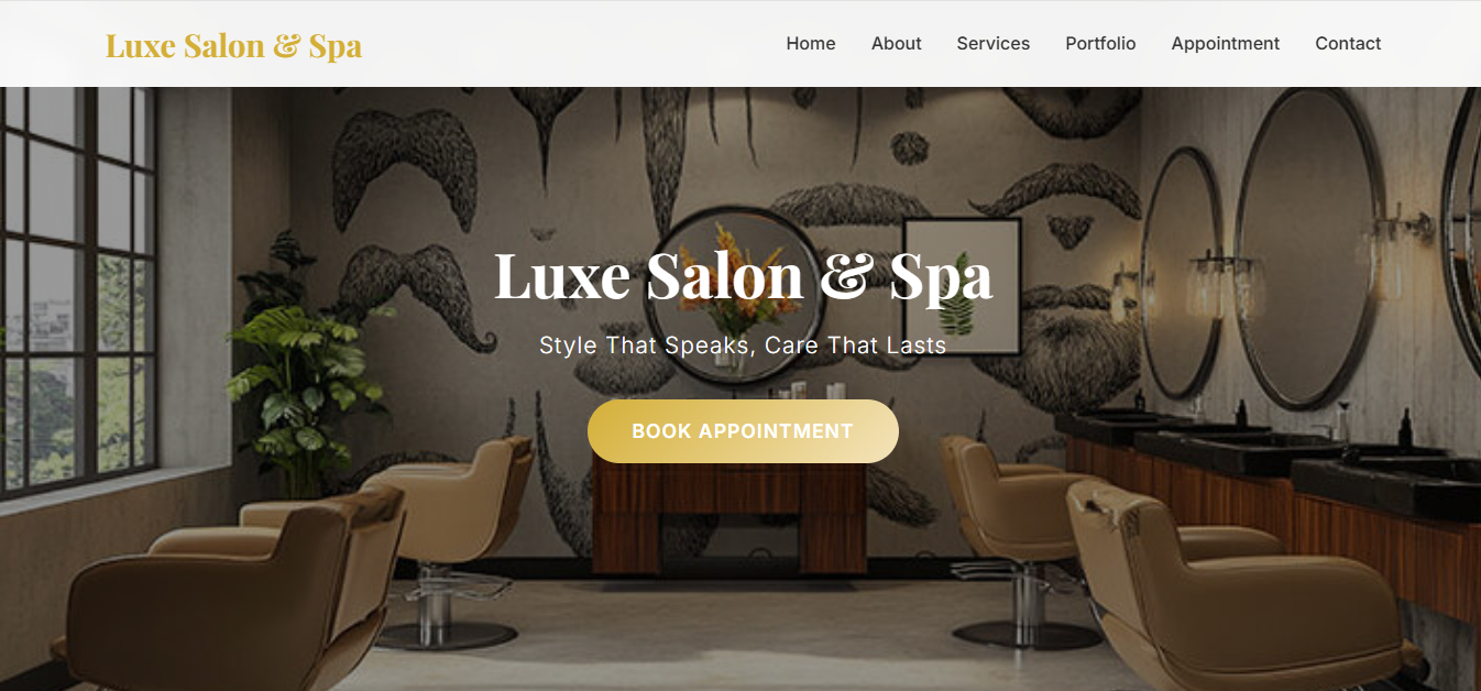 Aesthetic beauty salon website with service menu and booking options.