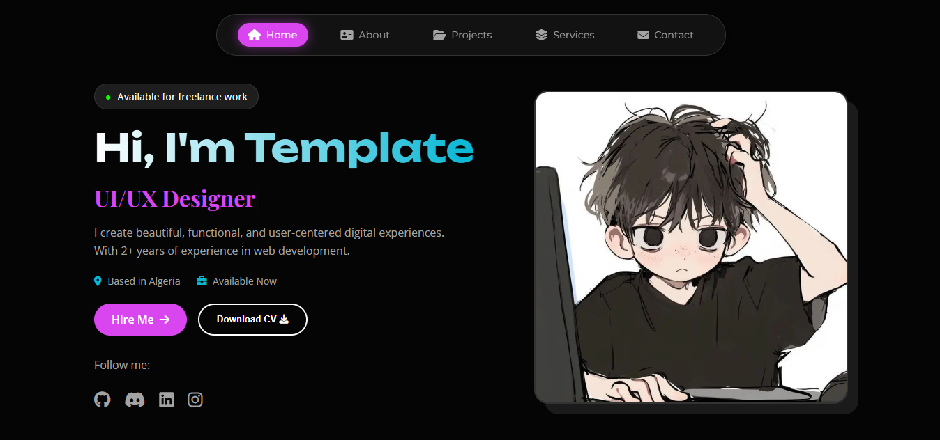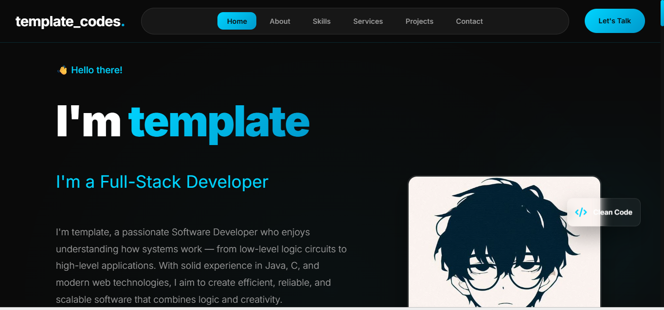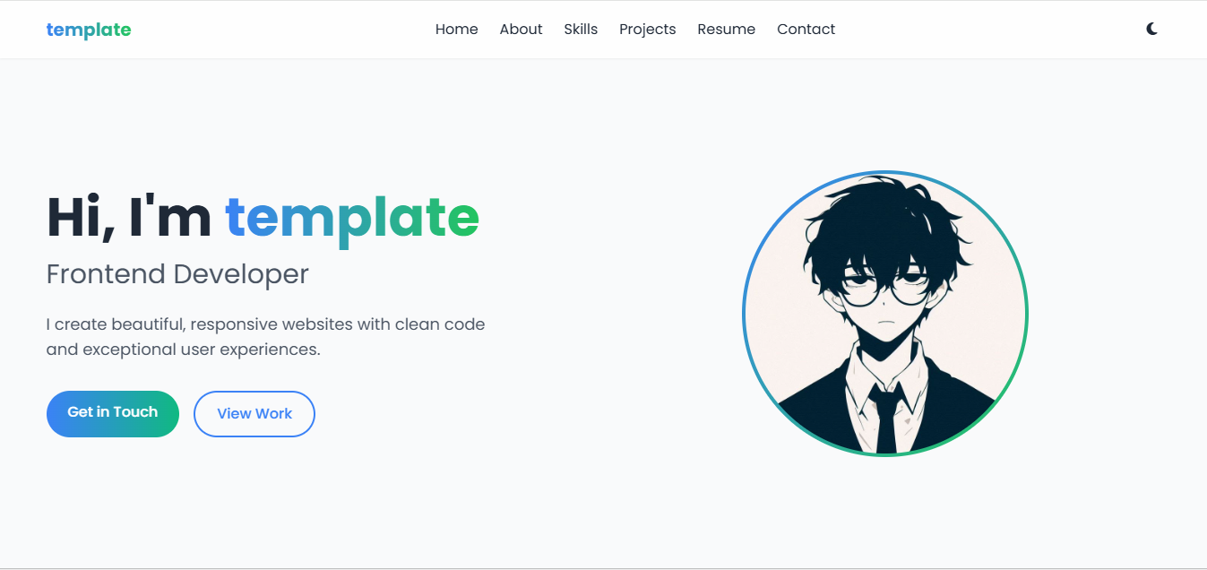 Clean and minimal personal portfolio template for developers.